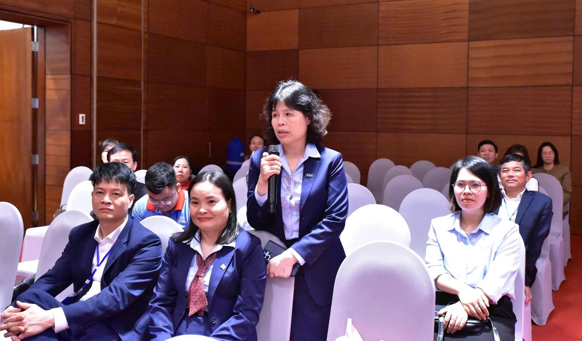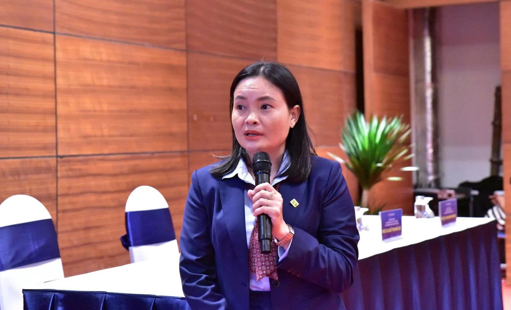 Bà Trần Thị Tuyết Dung, đại diện Công ty TNHH MTV Gà giống Dabaco chia sẻ tại phiên thảo luận của Tiểu ban Khoa học công nghệ về gia cầm. Ảnh: Trung Hiếu.